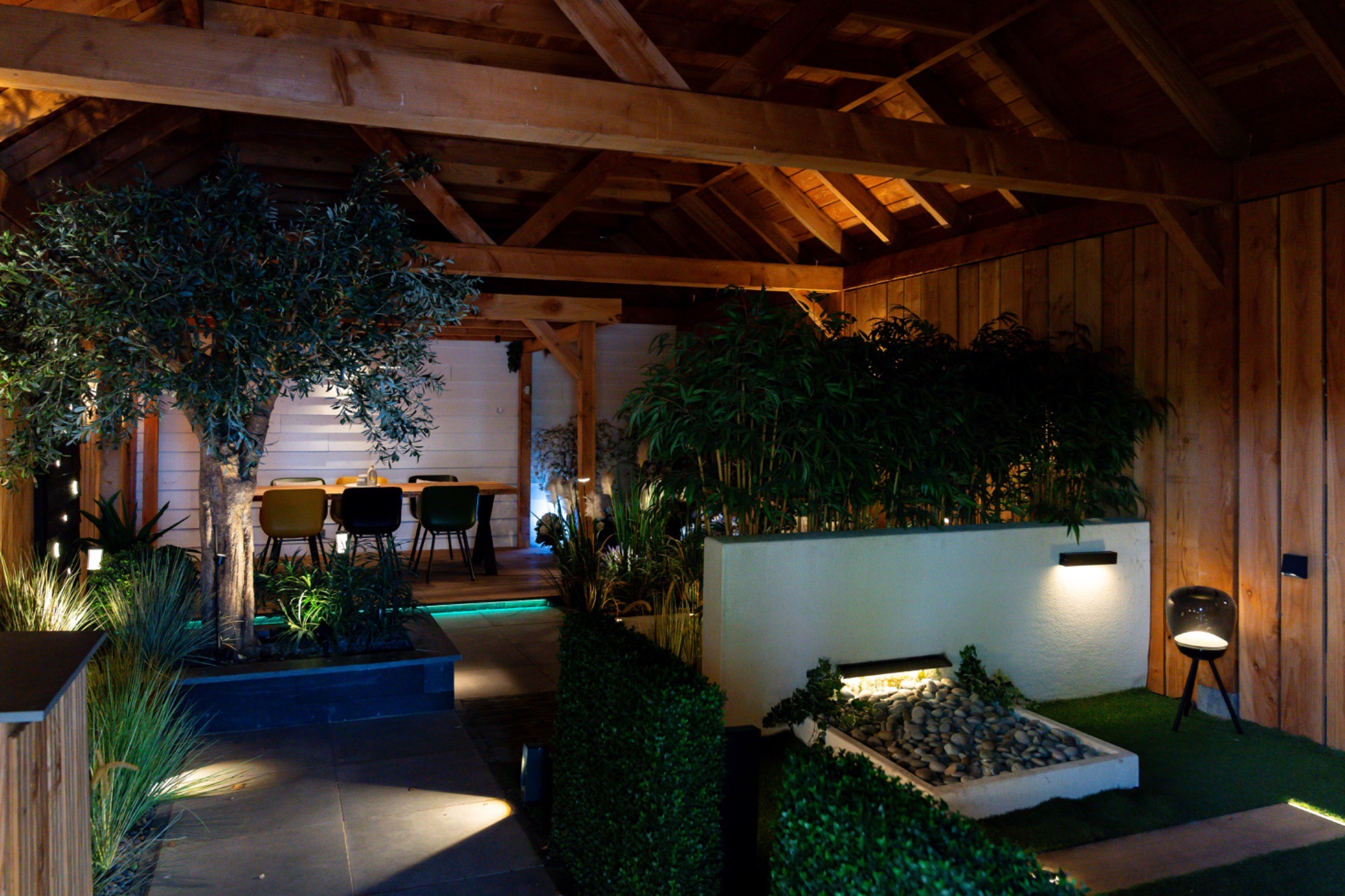 In onze showtuin laten we zien hoe je een avondtuin stijlvol en sfeervol kunt vormgeven. Je vindt er inspiratie voor verlichting, slimme combinaties met bestrating en gezellige hoekjes die je ook bij jou thuis kunt toepassen. Zo kun je direct ervaren hoe de juiste keuzes in licht en materialen jouw tuin transformeren tot een plek waar je zelfs op koude avonden graag verblijft.