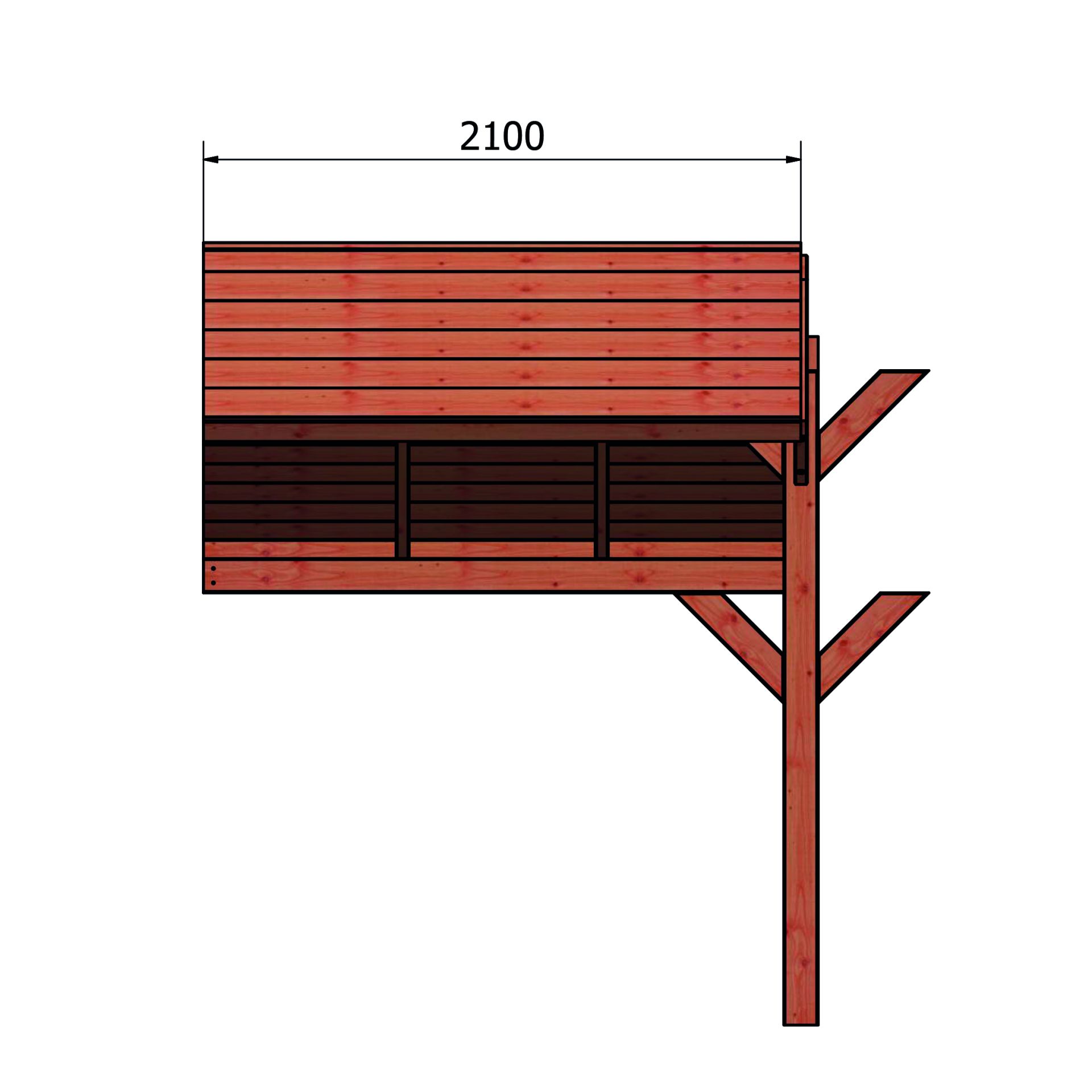Incl. ijzerwaren / tek. - Dakleer: 13 m² / Shingles: 9 m² / Aqua: 12 1 / Profiel: 11 m² - Palen: 12x12cm.