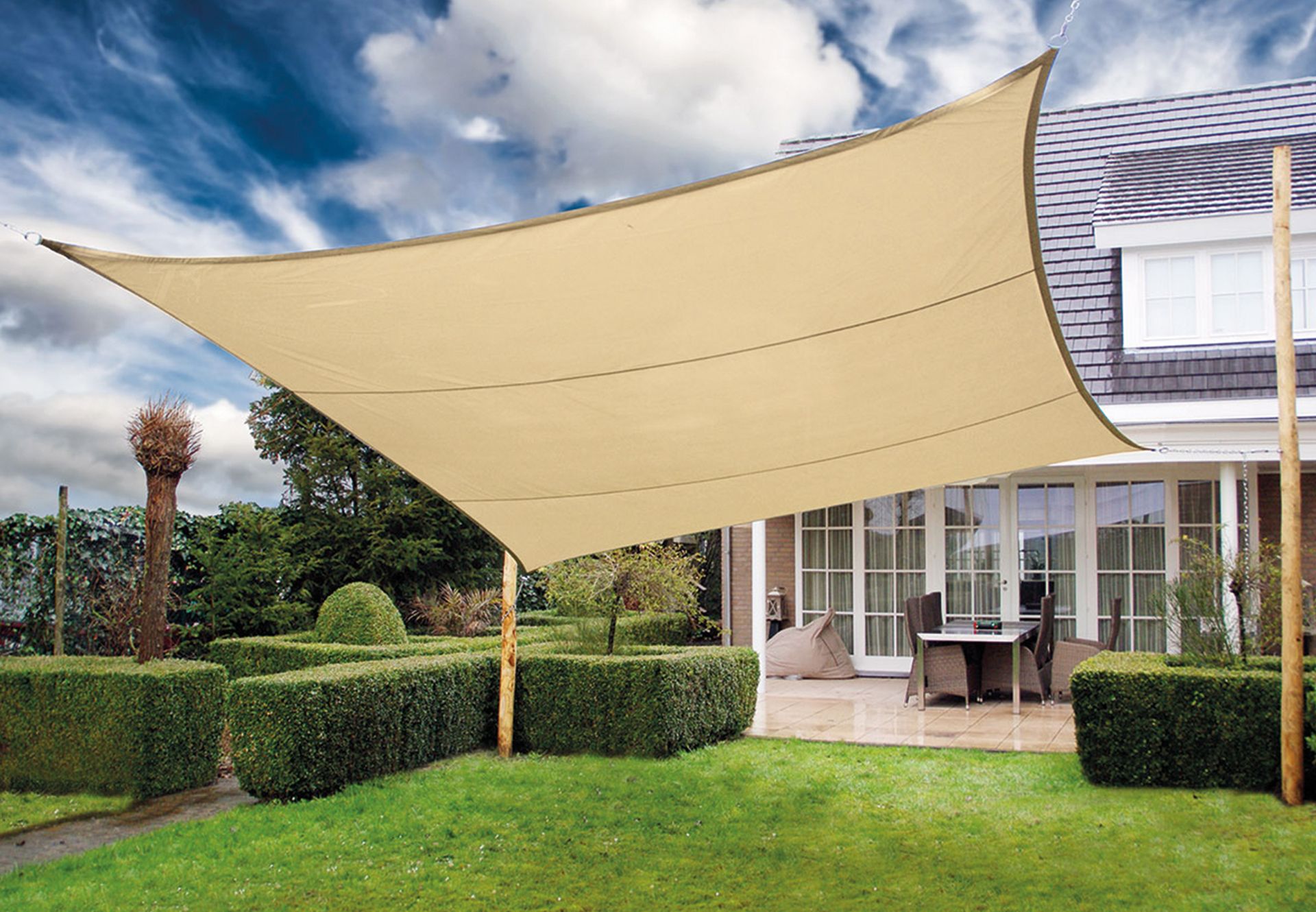 Zonnezeil waterdicht - 4-kant 4.2x4.2m zandbeige